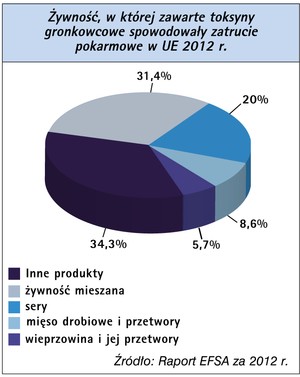 Sprawozdawczość dotycząca zatruć pokarmowych w UE przypadki zatruć toksyną gronkowcową raportuje w kategorii „toksyny bakteryjne” razem z toksyną botulinową wytwarzaną przez bakterie z rodzaju Clostridium. W 2012 r. odnotowano 777 takich przypadków, co daje 14,5% wszystkich przypadków zatruć pokarmowych w populacji krajów europejskich i plasuje tę grupę czynników na drugim miejscu. Ponadto należy nadmienić, że od 2008 r. liczba przypadków sukcesywnie rośnie, z roku na rok.
