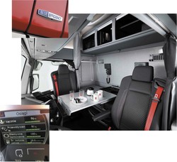 Mówiąc o kabinach trzeba wspomnieć także o Renault Trucks T High i kabinie Maxispace. Jej charakterystyczną cechą jest tylna część z płaską podłogą o szerokości 2,5 m i wnętrze o wysokości ponad 2 m. W kabinie Maxispace zamiast górnej leżanki znajduje się dodatkowy schowek, podzielony na trzy podświetlane komory o wysokości 36 cm, zamykane roletami. W leżankę wbudowano stolik o wymiarach 81 x 60 cm, rozkładany za naciśnięciem przycisku. Po skończonym posiłku stolik ten można złożyć, odchylając go na tylną ścianę kabiny. Stolik ma wyściełany schowek z przegródkami i w akcesoriach można dokupić pasującą do niego zastawę stołową. Praktycznym dodatkiem jest także dodatkowy schowek w postaci szuflady pod fotelem kierowcy.