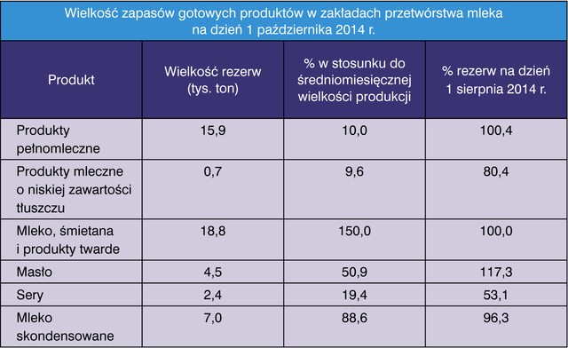 Rosyjskie embargo miało najbardziej pozytywny wpływ na produkcję sera, która znacznie wzrosła. Ponadto zaobserwowano wysokie zapotrzebowanie rynku na produkty pełnomleczne. Tymczasem, po szczycie popytu na mleko i oleje o niskiej zawartości tłuszczu, w sierpniu i we wrześniu sprzedaż tych produktów niemal ustała, co doprowadziło do wzrostu zapasów.