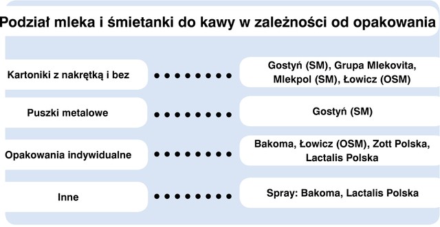 Oferta mleka i śmietanek do kawy na polskim rynku