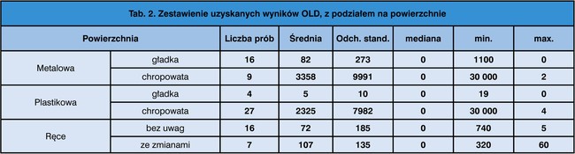 Badania OLD przeprowadziło laboratorium, akredytowane wg normy PN-EN-ISO 4833:2004 „Mezofilne tlenowe mikroorganizmy – metoda ilościowa. Mikrobiologia żywności i pasz. Horyzontalna metoda oznaczania liczby mikroorganizmów. Metoda płytkowa w 30˚C”. Wyniki zestawiono w tabeli 2.