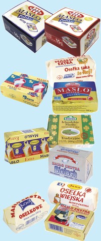 - Mlekpol (SM) – Masło ekstra Łaciate (kostka 100 g i 200 g), Masło Ekstra Osełka (osełka 200 g), Masło Ekstra Osełka (osełka 300 g), Mazurski smak Masło ekstra (kostka 200 g), Masło Wiejskie (kostka 200 g)