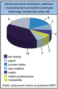 Jak wspominano na początku artykułu system RASFF odnotowuje przypadki zanieczyszczeń pleśniami, drożdżami oraz mykotoksynami różnorodnych produktów spożywczych. Od początku funkcjonowania systemu odnotowano 9358 zanieczyszczeń mykotoksynami, z czego tylko 9 dotyczyło mleka i produktów z mleka. Zanieczyszczenia pleśniami i drożdżami to 1144, z czego 78 dotyczyło mleka. Stanowi to odpowiednio 0,09% i 6,82%. Alfatoksyny pojawiają się w systemie RASFF, gdy ich zawartość wyniesie od 0,03 µg, pleśnie deklarowane były w ilościach od 100 jtk/g do 9,0x 105 jtk/g.