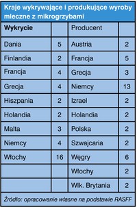 Najczęściej wykrycie dokonywane było we Włoszech – 16 przypadków, zaś producentem z „problemami” najczęściej były Niemcy – 13 przypadków. Szczegóły podano w tabeli.