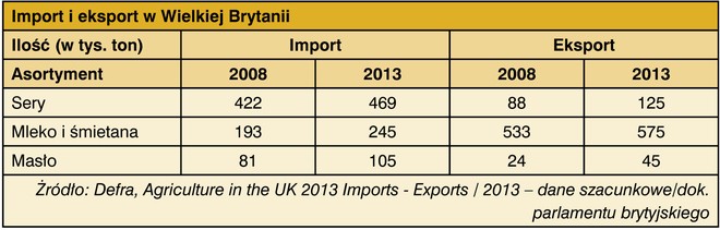 Z danych analitycznych wynika, że na przestrzeni ostatnich 5 lat wzrósł import serów, mleka i masła. Eksport z Wielkiej Brytanii zwiększył się o 42% w kategorii sery, 87% w grupie masło oraz 7,8% w kategorii mleko i śmietana.