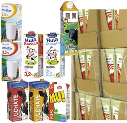 - Milko, w 1-litrowych kartonach (o zawartości tłuszczu 2,0% i 3,2%)