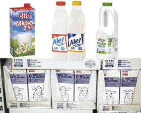 - Białe, w opakowaniach 1 l, o zawartości tłuszczu od 0,5% do 3,2%