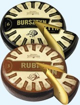 Pierwszym produktem tego typu był Bursztyn. Jego różne wersje dojrzewają 6, 8 lub 12 miesięcy. Ser Bursztyn to kruchy ser z pikantną nutą. Jego proces produkcji opracowano w 2002 roku. Unikalny smak i aromat zawdzięcza długiemu okresowi dojrzewania w pieczołowicie dobranych warunkach. Ser dojrzewa przez 6 miesięcy, a każdy krąg jest starannie pielęgnowany oraz ręcznie masowany z użyciem odpowiednio dobranej pasty, która nadaje jego skórce czarny kolor. Miąższ sera charakteryzuje się zwartą i lekko kruchą strukturą z wyczuwalnymi kryształkami, których przybywa wraz z upływem czasu dojrzewania. Smakowi towarzyszy lekko pikantna nuta. W ofercie firmy jest także Ser Bursztyn (tarty) w torebkach.