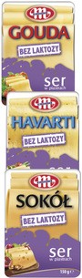 Równolegle Grupa Mlekovita poszła krok dalej – wprowadziła serię bezlaktozowych serów żółtych – Sokół, Gouda i Havarti – dostępnych zarówno w blokach, jak i w mniejszych opakowaniach w postaci plastrów. Cała linia bezlaktozowych produktów firmy utrzymana jest w jednakowej kolorystyce fioletowej.