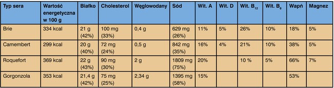 Ze współczesnego, żywieniowego punktu widzenia sery podpuszczkowe pleśniowe są produktem kontrowersyjnym. Z jednej strony są bogate w pełnowartościowe białko (ok. 20-21 g) oraz wapń (od 18 do 66%). Są też źródłem witamin B6 i B12. Zawierają też niewiele witaminy D oraz magnezu. Z drugiej strony są one niestety serami bardzo tłustymi. Ich wartość kaloryczna może się kształtować na poziomie od 300 do 370 kcal/100 g. Charakteryzuje je też duża ilość nasyconych kwasów tłuszczowych (24-31 g) oraz cholesterolu.