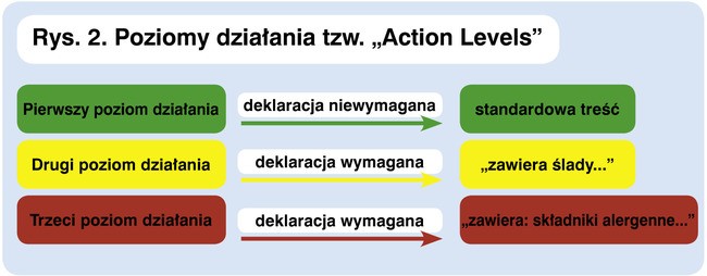 W metodzie tej zdefiniowano tzw. poziomy działania („Action Levels”) oparte na progach określonych w badaniach klinicznych służące do określania czy żywność musi być znakowana lub nie (rys. 2).