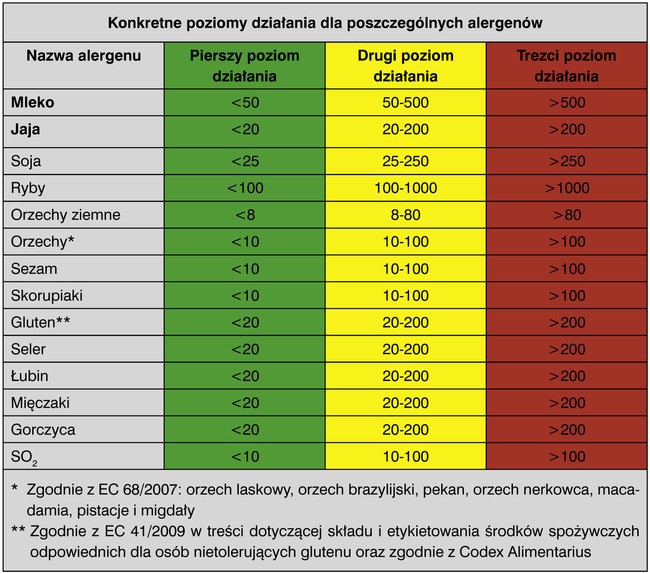 Dobrym przykładem przyjętego modelu zarządzania ryzykiem związanym z alergenami jest Szwajcaria, gdzie obowiązkowy poziom deklaracji obecności śladów alergenów wynosi 0,1% czyli 1000 ppm, z wyjątkiem siarczynów (10 mg/l produktu) oraz glutenu (10 mg gliadyny/100 g s.m. produktu). Dodatkowo nie ma obowiązku znakowania, jeżeli nie ma dowodów, na właściwości alergenne, któregoś ze składników (np. syrop glukozowy wytworzony z pszenicy).