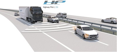 Koncern Daimler poszedł o krok dalej – w sierpniu b.r. Mercedes-Benz Actros wyposażony w inteligentny system Highway Pilot jechał po autostradzie A8 w okolicach Stuttgartu. Ciężarówka została warunkowo dopuszczona do ruchu, jako pojazd badawczy. Lokalny urząd dozoru technicznego przeprowadził kontrolę pojazdu i wydał opinię biegłego, na podstawie której ciężarówka została dopuszczona do jazdy po autostradach w sposób częściowo zautomatyzowany. System jest w zasadzie połączeniem wielu sprawdzonych rozwiązań i czujników z zakresu komfortu i bezpieczeństwa. Mercedes-Benz Actros napędzany jest 12,8-litrowym silnikiem z rodziny OM 471, a jego wyposażenie obejmuje wszystkie sprawdzone systemy wspomagania i bezpieczeństwa, takie jak przekładnia Mercedes PowerShift 3, tempomat Predictive Powertrain Control (PPC), system antykolizyjny Active Brake Assist 3, asystent monitorujący zmęczenie kierowcy oraz komputer pokładowy FleetBoard. Wszystkie te układy współpracują z czujnikami systemu Highway Pilot – radarem i kamerą stereoskopową. Cała technologia jest więc zainstalowana w ciężarówce i pozwala na jazdę zautomatyzowaną bez potrzeby łączenia się z internetem. System idealnie sprawdza się na autostradzie: utrzymuje odpowiedni dystans od poprzedzającego pojazdu i w odpowiednim momencie hamuje, gdy w lukę wjedzie jeszcze jeden samochód. Highway Pilot nie zastępuje kierowcy, ale wspiera go i ogranicza zmęczenie wywołane monotonną jazdą autostradową oraz ruszaniem i hamowaniem w korku. Są to sytuacje w których najczęściej dochodzi do wypadków – gros kolizji to najechania na tył pojazdu, zajechania drogi przy zmianie pasa ruchu – wynikają ze zmęczenia i nieuwagi kierowców. Przewagą systemów automatycznych jest to, że się nie męczą. W trybie jazdy zautomatyzowanej kierowca ma przez cały czas kontrolę nad pojazdem – może przejąć stery w wymagających tego sytuacjach. Ponadto, gdy minimalne wymagania dla systemu nie są spełnione, np. ze względu na złą pogodę lub niedostateczne oznakowanie poziome jezdni, za pomocą sygnałów akustycznych i optycznych prosi on kierowcę o przejęcie kontroli i dalszego prowadzenia pojazdu. Ten ma na to wystarczająco dużo czasu. Jeśli jednak nie zareaguje, ciężarówka sama się zatrzyma – automatycznie i w bezpieczny sposób. Najciekawsze jest to, że nie są to opowieści o żelaznym wilku – takie rozwiązanie już działa i w zasadzie jego masowe wdrożenie mogłoby być możliwe już teraz. Samo wyposażenie pozwalające na autonomiczną jazdę jest dostępne i możliwe do montowania w różnych samochodach. Polega ono na współdziałaniu kilku systemów, takich jak radar, kamery dające stereoskopowy obraz i rozpoznające oznaczenia na drodze, no i oczywiście aktywny tempomat, których celem jest utrzymanie pojazdu na środku pasa jezdni. System wykorzystuje trójwymiarowe mapy, dzięki czemu pokładowy komputer zna topografię terenu. Potrafi też łączyć się z innymi pojazdami i wymieniać z nimi informacje. Firma pracuje też nad technologią „Blind Spot Assist”, która za pomocą radarów monitoruje otoczenie pojazdu i informuje o niewidocznych w lusterkach uczestnikach ruchu. System nie prowadzi do „eliminacji” zawodowego kierowcy – ma jedynie na celu zmniejszenie uciążliwości jego pracy. Będzie on mógł zajmować się innymi rzeczami dzięki, czemu jego znużenie będzie o 25% mniejsze niż znużenie kierowcy zajmującego się wyłącznie prowadzeniem samochodu. Zielone światło dla rozwoju tego typu technologii zapalił także niemiecki rząd. Ministerstwo Transportu podjęło m.in. decyzję o rozbudowie infrastruktury elektronicznej na fragmentach autostrady A9 w Bawarii, co ma pomóc producentom samochodów w testowaniu pojazdów autonomicznych w warunkach prawdziwego ruchu.