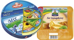 Mleczarnia Mlekpol (SM) produkuje m.in. sery topione w pudełkach z papryką, pieczarkami, ze szczypiorkiem, z szynką oraz sery wędzone z przyprawami, z szynką, z papryką oraz z salami. Gamę produktów Mlekpol (SM) zamykają tu miniserki topione: ze szczypiorkiem, z papryką, z szynką i z przyprawami. Grupa Polmlek pod marką Warmia oferuje m.in. ser z szynką, w plastrach oraz z ziołami i szynką w krążkach. Pod marką Łowicz znajdziemy m.in. ser topiony w plastrach z szynką i chilli oraz w bloczkach z szynką i papryką. W ofercie Grupy Lactalis w Polsce znajdziemy m.in. serki do smarowania creme de brie oraz camembert de bleu.