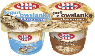 Koncepcja Mlekovity opiera się na zaproponowaniu tradycyjnego, uniwersalnego dla wszystkich, pożywnego śniadania. Jej portfolio zawiera m.in. jogurt z owsianką w pięciu wariantach smakowych: truskawkowym, jabłkowym, bananowym, klasycznym i deserowym z cukrem trzcinowym brązowym. Owsianki z Mlekovity to połączenie delikatnego jogurtu z kawałkami owoców z płatkami owsianymi i ziarnami owsa. Są mało kaloryczne i stanowią źródło składników odżywczych, m.in.: pełnowartościowego białka, wapnia oraz błonnika. Zawarte w płatkach owsianych i ziarnach owsa węglowodany dostarczają organizmowi niezbędnej energii. Owsianki produkowane są bez konserwantów, sztucznych aromatów i barwników. Produkty oferowane są w 180 g opakowaniach.