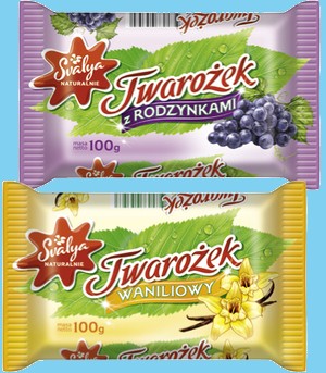 Linia Svalya to trzy grupy przekąsek twarogowych: twarogowe batoniki, twarożki na przekąskę i twarogowe desery. Twarogowe batoniki z mlekiem, z truskawkami, z galaretkami, z makiem, z wiśniami i z waniliną, reprezentują poręczny produkt w sam raz na czasy dużej mobilności młodych konsumentów i wymagań wobec produktu stawianych przez ich rodziców.