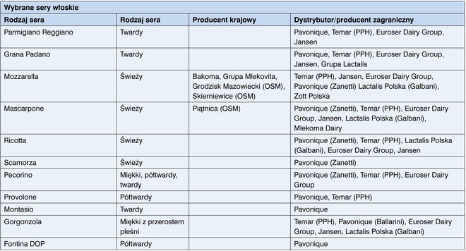 Około 25% serów produkowanych we Włoszech sprzedaje się poza granicami kraju. W ujęciu wartościowym stanowią one 90% całego eksportu artykułów mlecznych. Do najbardziej znanych włoskich serów należą: parmezan, mozzarella, pecorino, gorgonzola, ricotta czy mascarpone. 70% włoskiego eksportu trafia do krajów UE.