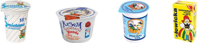 Śmietana jogurtowa 9% dzięki niskiej zawartości tłuszczu oraz unikalnej jogurtowej mikroflorze bakteryjnej może być stosowana przez osoby będące na diecie. Jej delikatny smak oraz lekka konsystencja sprawiają, że może być doskonałym dodatkiem do sałatek i surówek. Dostępna jest w kubkach 200 g i 350 g oraz wiaderku 1 kg. Z kolei Śmietana Naturalna 12% stanowi doskonały dodatek do zup, sosów, sałatek, surówek i deserów. Dodanie śmietany do sałatek i surówek wzbogaca je w witaminy rozpuszczalne w tłuszczu (A, D, E, K), a także chroni przed utratą witaminy C. Dostępna jest w kubku 350 g.