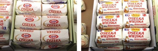 Gostyń (SM) proponuje swoim klientom masło Gostyńskie ekstra w kostkach 250 g oraz masło osełka marki Zanetti w opakowaniach 200 g. Lacpol (PHZ SM) oferuje masło Ekstra Staropolskie w kostkach. Podobnie ROTR (SM) oferuje masło ekstra w kostkach 200 g.