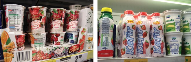 Dobrym przykładem innowacji są jogurty, w przypadku których najpopularniejszą wersją smakową jest produkt całkowicie wymieszany z preparatem owocowym (tzw. jogurty mieszane, z ang. stirred yoghurt). Równocześnie na rynku oferowane są jogurty warstwowe (z ang. layered products), jogurty z wsadem owocowym na wierzchu białej masy mlecznej (z ang. fruit-at-the-top) oraz jogurty z wsadem owocowym na spodzie opakowania (z ang. fruit-on-the-bottom, FOB). Dodatkowo w ofercie zakładów mleczarskich są jogurty w opakowaniach dwuczęściowych (z ang. fruit-corner products) oraz jogurty z wsadem owocowym umieszczonym w nakładce nad wieczkiem (tzw. topperem). Osobną ofertą są jogurty pitne, jogurty z mleka ekologicznego (BIO) lub z komponentami owocowymi otrzymanymi z owoców z certyfikatem BIO. Dzięki właściwie dobranym proporcjom składników recepturowych oraz zastosowaniu wysokiej jakości surowców produkty tego typu wyróżniają się wśród oferty rynkowej starając się odpowiedzieć na oczekiwania konsumentów w każdym wieku.