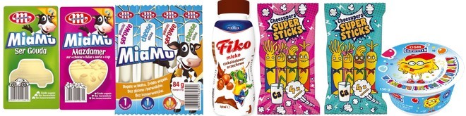 Ciekawym deserem jest propozycja Grupy Polmlek. Jest to produkt wytwarzany na bazie śmietanki, kaszy manny i owoców, sprzedawany w dwukomorowym opakowaniu oddzielającym wkład owocowy od produktu głównego. Jeśli chodzi o serowe oferty produktów dla dzieci to dużym zainteresowaniem cieszą się paluszki serowe. Dzieci w wieku szkolnym potrzebują czegoś do przegryzienia „na szybko”, co dostarczy energii i doda sił. Zazwyczaj każdy paluszek serowy pakowany jest osobno, co umożliwia dziecku wygodną konsumpcję w szkole na przerwie albo na wycieczce. Jest także doskonałą alternatywą dla niezdrowych przekąsek, gdyż serowe paluszki dostarczają pełnowartościowego białka i wapnia tak ważnego w okresie wzrostu dzieci, dla zdrowych kości i zębów. Paluszki serowe produkuje między innymi Grupa Mlekovita pod nazwą MiaMiu i Žemaitijos pienas pod marką Pik-Nik.