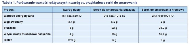 W związku z tym, że użytkową cechą charakterystyczną tych produktów jest duża smarowność, do ich produkcji stosuje się zwiększoną ilość tłuszczu. W przypadku serów do smarowania ich ilość kształtuje się na poziomie ok. 22 g/100 g produktu. W przypadku sera białego tłustego jest to około 8 g. Równie niekorzystna jest też ilość białka. W serze białym w 100 g jest to około 18 g, a w serach do smarowania zaledwie 6 g na 100 g.