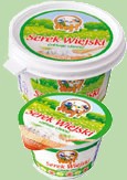 Wśród producentów, którzy postanowili zaspokoić zarówno potrzeby klientów sięgających po serki w „czystej” postaci, jak i tych, którzy wolą wybrać produkt wzbogacony dodatkiem, prym wiedzie oczywiście Piątnica (OSM). Budując portfolio, piątnicka spółdzielnia stawia na tradycję, połączoną z nowoczesnością. Tradycja kryje się w powszechnie lubianych przez Polaków rodzajach dodatków, zaś nowoczesność w bardziej egzotycznych propozycjach smakowych, a także w opakowaniach. Dla tradycjonalistów firma ma m.in. twarożki domowe grani – bez dodatków albo z ogórkiem i szczypiorkiem – lub serek wiejski z dołączonym pojemniczkiem z truskawkami. Pasjonaci odkrywania nowych smaków i nowatorskich form podania mogą wybierać m.in. spośród serków z dodatkiem jagód, malin i żurawiny, brzoskwiń lub ananasa podanych w dwukomorowych opakowaniach, by samodzielnie i w dowolnych proporcjach zmieszać oba składniki. Najbardziej tradycyjne połączenie, czyli ze szczypiorkiem, firma oferuje w formie gotowego produktu, gdzie serek jest od razu zmieszany z dodatkiem. Tu mała dygresja. Historia szczypiorku, jako dodatku do serków typu cottage cheese, to kolejne ciekawe zjawisko wśród rynkowych trendów. To właśnie od tej zielonej rośliny z rodziny czosnkowatych rozpoczęła się „przygoda” serków wiejskich z dodatkami. Tymczasem dziś – co może wydawać się dziwne lub trudne do uwierzenia – dość trudno znaleźć taki wariant na sklepowych półkach. Oprócz mleczarni Piątnica (OSM) oferują go właściwie jedynie Mlekpol (SM) i łódzka spółdzielnia mleczarska Jogo (ŁSM). Wielka nieobecność szczypiorku jest jednak elementem szerszego zjawiska – dominacji na rynku serków z dodatkami wersji słodkich, owocowych.