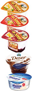 Puddingi są klasyczną formą deserów mlecznych oferowanych w naszych sklepach. Są wytwarzane na bazie delikatnego budyniu. Podstawowymi składnikami są mleko, skrobia oraz wybrany smak. Desery typu puddingi często wzbogacane są bitą śmietaną lub sosami smakowymi. Do najczęściej oferowanych smaków puddingów należą: waniliowy, czekoladowy, karmelowy. Czasami pojawiają się smaki: orzechowy lub truskawkowy.