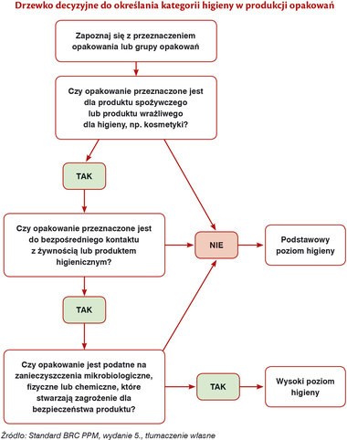 Standard BRC PPM ma inną konstrukcję wymagań normy w zależności od kategorii ryzyka opakowań. Ogólnie rzecz biorąc, standard jest podzielony na dwie kategorie wymogów, które zależne są od zdiagnozowanego poziomu wymaganej higieny. Wysoki poziom higieny jest wymagany tam, gdzie produkowane, magazynowane i przetwarzane są opakowania do bezpośredniego kontaktu z produktami spożywczymi lub innymi oznaczonymi produktami wrażliwymi na higienę (takie jak te przeznaczone do spożycia przez ludzi lub stykające się z organizmem, na przykład przez nakładanie na skórę – kosmetyki). Podstawowy poziom higieny jest dla produktów opakowaniowych inny niż te z poziomu wyższego higieny. Będą tu zaliczały się opakowania do innych produktów konsumenckich oraz opakowania zbiorcze. Standard pokazuje drzewko decyzyjne do analizy, który wariant wymagań należy wdrożyć. Drzewo decyzyjne pokazano na rysunku.