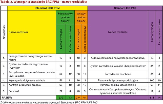 Widać, że właściciele obydwu standardów podobnie postrzegają kwestie ustanowienia systemu oraz jego utrzymania. Wskazane wymagania są podobne do tych znanych ze standardów dedykowanych do produkcji żywności.