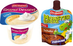 Ehrmann Polska w swoim portfolio ma m.in. trzy linie: Grand Dessert, Milchfrisch oraz linię Monster Backe skierowaną do najmłodszych odbiorców. Linia Grand Dessert to delikatne kremowe puddingi o wielu smakach (waniliowy, czekoladowy, orzechowy, ciemna czekolada, kaszka manna, kawa) z muśnięciem puszystej śmietany również w różnych wariantach smakowych (naturalna, mięta, stracciatella, orzech, kawa, czekolada).