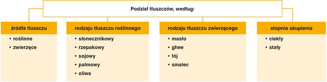 Postępy w procesie produkcji jadalnych tłuszczów i olejów doprowadziły do pojawienia się produktów wysokiej jakości. Tłuszcze spożywcze można klasyfikować według różnych kryteriów m.in. ze względu na źródło tłuszczu, rodzaju tłuszczu, stopień skupienia tłuszczu. Tłuszcze stanowią istotny element poprawiający walory smakowe produktów. W zależności od pochodzenia jadalne tłuszcze dzieli się na: tłuszcze zwierzęce, oleje roślinne, margaryny stołowe oraz tłuszcze kuchenne. Te ostatnie mogą mieć stałą lub półpłynną konsystencję i są wytwarzane z uwodornionych olejów roślinnych i/lub zwierzęcych (smalcu, łoju wołowego). Tłuszcze kuchenne na ogół nie zawierają kwasów wielonienasyconych. Są one względnie odporne na działanie wysokiej temperatury, stąd też znajdują zastosowanie podczas smażenia, pieczenia, gotowania. Wśród tłuszczów kuchennych wyróżnia się piekarskie, dla których podstawą są ciekłe, utwardzone oleje roślinne i tłuszcze zwierzęce, oraz tłuszcze cukiernicze, dla których podstawę stanowią rafinowane tłuszcze roślinne ciekłe i utwardzone lub mieszanina olejów roślinnych oraz tłuszczów zwierzęcych.