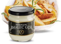 Na rynku dostępny jest także smalec. Smalec gęsi polecany jest przez Desmal w słoikach 300 g. Szeroką gamę tłuszczów zwierzęcych do kulinarnych zastosowań oferuje firma Agro-Top (PPH), a wśród nich smalec gęsi, kaczy, wieprzowy i tłuszcze wołowe. Smalec gęsi dostępny jest w kubkach 200 g oraz w słoikach 320 g. Zaletami smalcu gęsiego jest kremowa i jedwabista konsystencja, brak zapachu, delikatny smak. Ze względu na odporność na wysokie temperatury dobrze sprawdza się w gastronomii, zaś półpłynna forma ułatwia dozowanie i oszczędza czas rozgrzewania tłuszczu. Polecany jest do smażenia potraw i przekąsek serwowanych na gorąco oraz na zimno. Smalec kaczy firmy Agro-Top (PPH) oferowany jest w kubkach 200 g, choć producent oferuje możliwość dostosowania opakowania do produktów oferowanych pod marką własną. Smalec wieprzowy, oprócz tradycyjnego przygotowywania potraw, można wykorzystać jako składnik ciast kruchych, ciast z nadzieniem mięsnym oraz do smażenia pączków i faworków. Smalec oferowany jest w kostkach 200 g i 250 g.