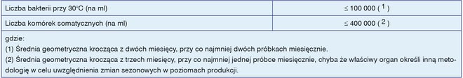 W przypadku gdy surowe mleko pochodzące od zwierząt innych niż krowy, jest przeznaczone do wytwarzania produktów z mleka surowego w procesie, który nie jest związany z obróbką cieplną, przedsiębiorstwa z sektora spożywczego muszą podjąć kroki w celu zapewnienia, że surowe mleko spełnia kryteria (tab. 3).