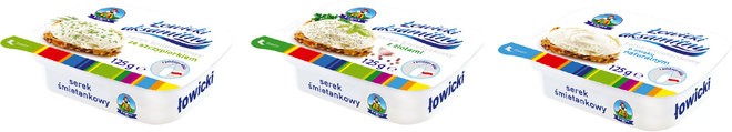 Z kolei wersje kremowe pakuje się w płaskie pojemniczki z platynką, a niekiedy także z ochronną pokrywką (np. Piątnica OSM, Hochland Polska, Mlekpol SM). Najczęściej występują w wersji prostokątnej lub okrągłego pudełka. Ich gramatura waha się w granicach od 100 g do 300 g. Od pewnego czasu na rynku goszczą też serki do smarowania pakowane w aluminiowo-pergaminowe owijki (Grupa Mlekovita). Nowością są opakowania jednorazowego użytku (Hochland Polska dla marek Kanapkowy i Almette).