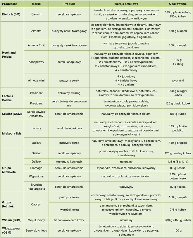 Wydaje się, że czynnikami napędzającymi sprzedaż oprócz idei czystej etykiety jest dobór smaku. Wybór jest przeogromny i w zasadzie każdego smakosza powinien zadowolić. Oprócz smaków klasycznych tj. szczypiorek i cebulka, zioła, czosnek, ogórek z koperkiem można spotkać bardziej oryginalne smaki tj. grillowana papryka i oliwki, musztarda i miód, tzatziki, łosoś, pomidory z chilli, zielone oliwki czy najnowszy pomysł: szpinak i czosnek. Ciekawym produktem jest np. serek kanapkowy z ziołami z kwasami omega 3 mleczarni Milkpol.