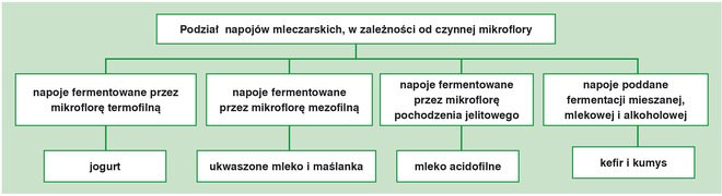 Podział napojów mleczarskich, w zależności od czynnej mikroflory