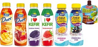 Firma Lactalis Polska ze swoją marką Jovi proponuje klientom serię produktów Duet stanowiących połączenie smaków tj.: kokos-migdał, melon-truskawka, truskawka-kiwi, malina-czerwona porzeczka, jagoda-wiśnia, banan-truskawka, jabłko-gruszka, gujawa-morela oraz trzy nowe smaki z edycji Smaki Świata: mango-imbir, granat-acerola oraz wiśnia-żeń-szeń. Firma przygotowała propozycje jogurtów Jovi bez dodatku cukrów w poręcznych butelkach dla osób dbających o linię. Konsument może wybierać spośród takich smaków jak: banan, malina, truskawka, morela z ziarnami, mango z chia, marakuja z chia oraz czarna porzeczka z chia. Pod marką I Love Kefir mamy do nabycia produkty w następujących wariantach smakowych: truskawkowym, owoce leśne i suszona śliwka.
