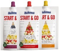 W ofercie firmy Bakoma znalazły się także musy w poręcznych saszetkach z zakrętką Start&Go Jogurt+Płatki Zbóż+Owoce. To idealna przekąska nie tylko na początek dnia, ale także sposób na świetne i zdrowe uzupełnienie energii w ciągu dnia. Skład jest bardzo prosty, na produkt składają się jogurt naturalny, zboża i owoce, produkt ten nie wymaga przechowywania w lodówce ani spożywania przy użyciu łyżeczki, co czyni go jeszcze bardziej wygodnym i poręcznym.