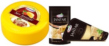 Jantar z kolei ser typu włoskiego. Należy do kategorii premium, jest serem długodojrzewającym. Charakteryzuje się twardą i ziarnistą konsystencją. Ma dojrzały, głęboki i wyrazisty smak. Najlepiej komponuje się z makaronami, w zapiekankach, dodatek do sałatek i jako przekąska koktajlowa na deskę serów, na której znakomicie współgra smakowo z orzechami. Ser Jantar to srebrny medalista w kategorii Ser twardy na deskę w konkursie Good Cheese 2018.