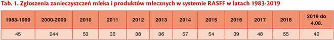 W badanym okresie 15 razy wystąpiło zgłoszenie do systemu RASFF spowodowane obecnością bakterii Staphylococcus spp. koagulazodatnich. Dwanaście razy dotyczyło to serów, w tym pięć razy z mleka niepasteryzowanego, dwa razy kazeiny jadalnej i jeden raz mleka koziego w proszku.