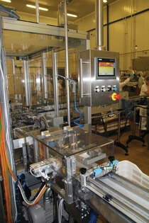 Stopiona masa sera topionego jest przekazywana za pośrednictwem pompy i zamkniętego rurociągu do maszyny rozlewająco-dozującej określoną ilość stopionej masy do opakowań jednostkowych, jedno- lub wieloporcjowych (np. klinki, kostki, bloki z folii aluminiowej, kiełbaski, foremki i tuby aluminiowe lub z tworzyw sztucznych), zależnie od konsystencji produktu. Sery topione są rozlewane na gorąco, bowiem wysoka temperatura masy serowej ogranicza ryzyko reinfekcji mikrobiologicznej produktu. Sery topione o twardej konsystencji rozlewa się w duże pojemniki, zaś po wystudzeniu niekiedy kroi w piastry i każdy osobno pakuje w folię polietylenową. Studzenie serów topionych prowadzi się najpierw w temperaturze otoczenia (przez ok. 30 minut), a następnie w chłodni, w temperaturze 4-6°C. Takie stopniowe ochładzanie jest celowe, gdyż zapobiega tworzeniu się skroplin na wewnętrznej powierzchni opakowań.