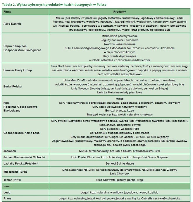 W Polsce najbardziej znaną firmą rodzimą przetwarzającą mleko kozie jest Agro-Danmis. W ofercie tej firmy znajdziemy szeroki asortyment produktów kozich obejmujących wszystkie kategorie mleczarskie. Ostatnio firma przeprowadziła gruntowny rebranding marki oraz wdrożyła nową stylistykę opakowań; opakowania mają świeży, nowoczesny wygląd. Kolorowe i wizerunkowo dopracowane opakowania interesująco prezentują się na półce. W ofercie firmy znajdują się m.in. mleko (w tym mleko bez laktozy i w proszku), jogurty, serki, twarogi, sery sałatkowe, sery twarde, desery termizowane oraz produkty do sektora B2B. Wisienką na torcie jest kozie mleczko.